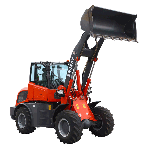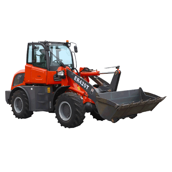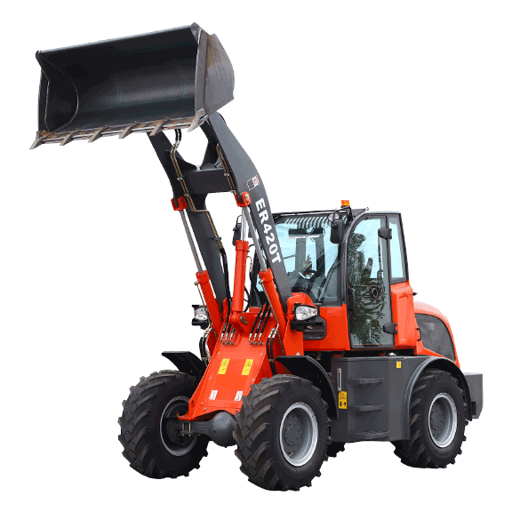 Everun always installs strong lift cylinder in all ER4T series wheel loader models. This guarantees that the load distribution is always optimally transferred to the loading arm. In addition, the entire loading system gains stability. The size of the lift cylinder is adapted to the respective size of the machine.