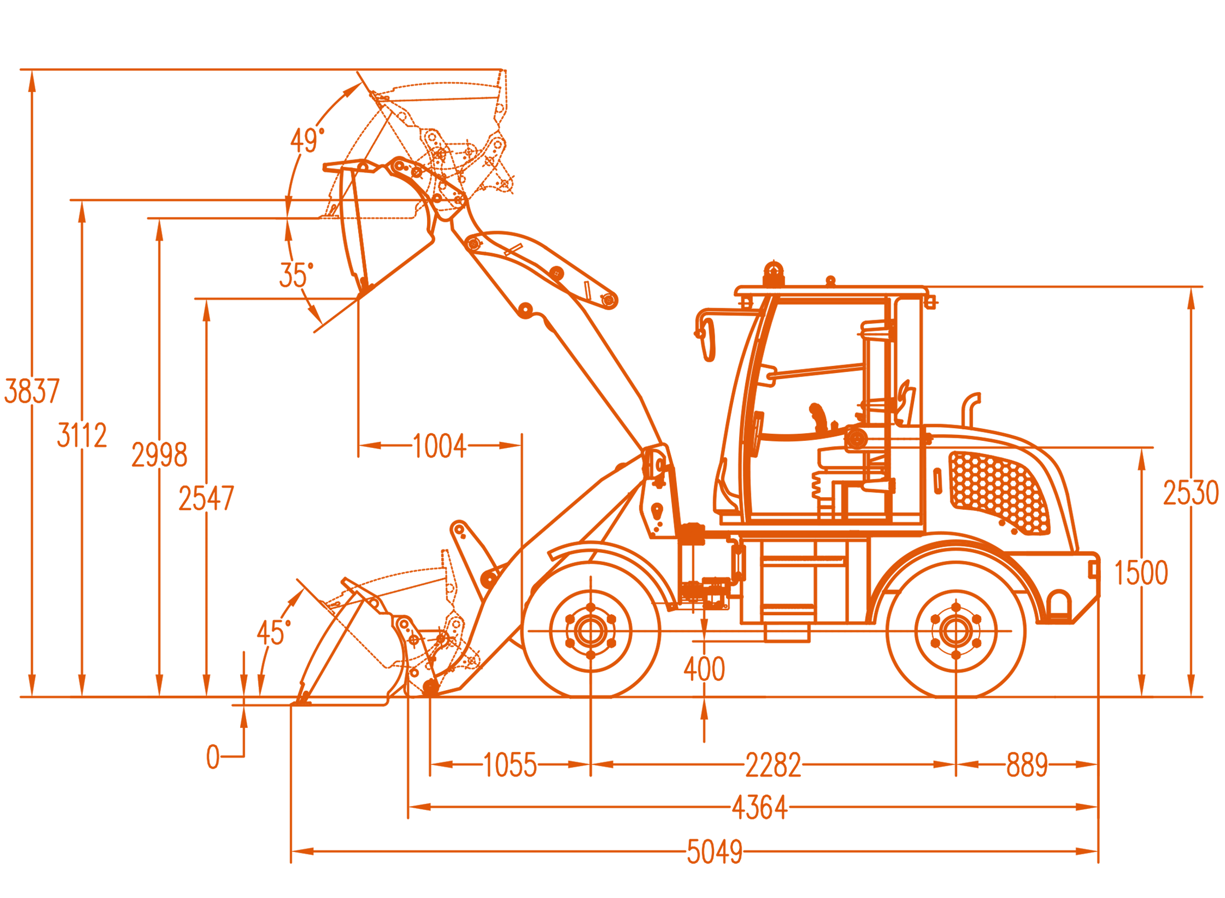 | Lungime totală(găleată pe pământ) | 5049mm |