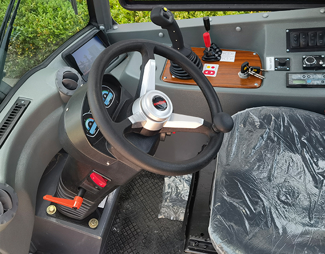 Coloana de direcție poate fi reglată individual în funcție de cererea operatorului. Acest lucru asigură că fiecare operator poate lucra cu mașina în mod ergonomic și fără oboseală.